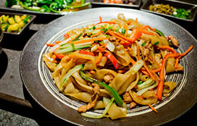 馄饨、水饺、热干面、炸酱面、鱼汤糊粉、海鲜粉、清汤手工面、酸辣粉、凉面、三鲜粉、牛腩面、肥肠粉、炒粉、炒面 、牛肉面、拉面等。